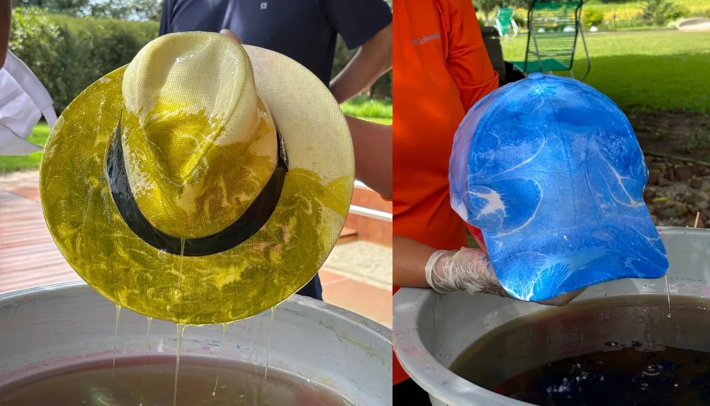 Vamos pintar um chapéu Panamá utilizando a técnica de marmorização. A pintura marmorizada é feita com aquarela e gel. Com essa técnica criamos padrões fluidos e únicos.