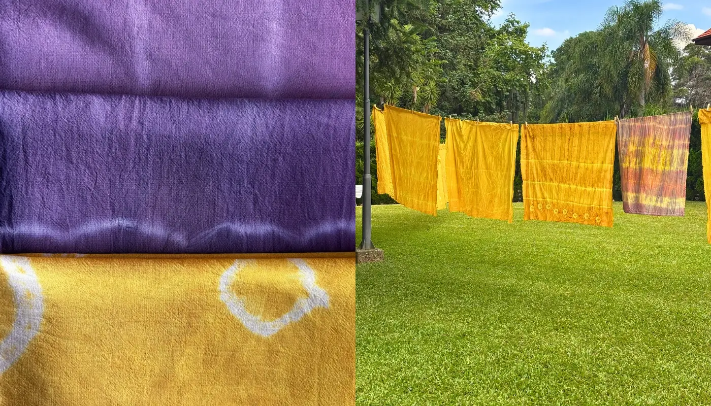 O tingimento natural utiliza corantes extraídos de plantas, minerais e materiais orgânicos para colorir tecidos, uma prática sustentável. Na aula, vamos tingir tecidos de algodão com milho roxo, cúrcuma, casca de cebola e urucum.